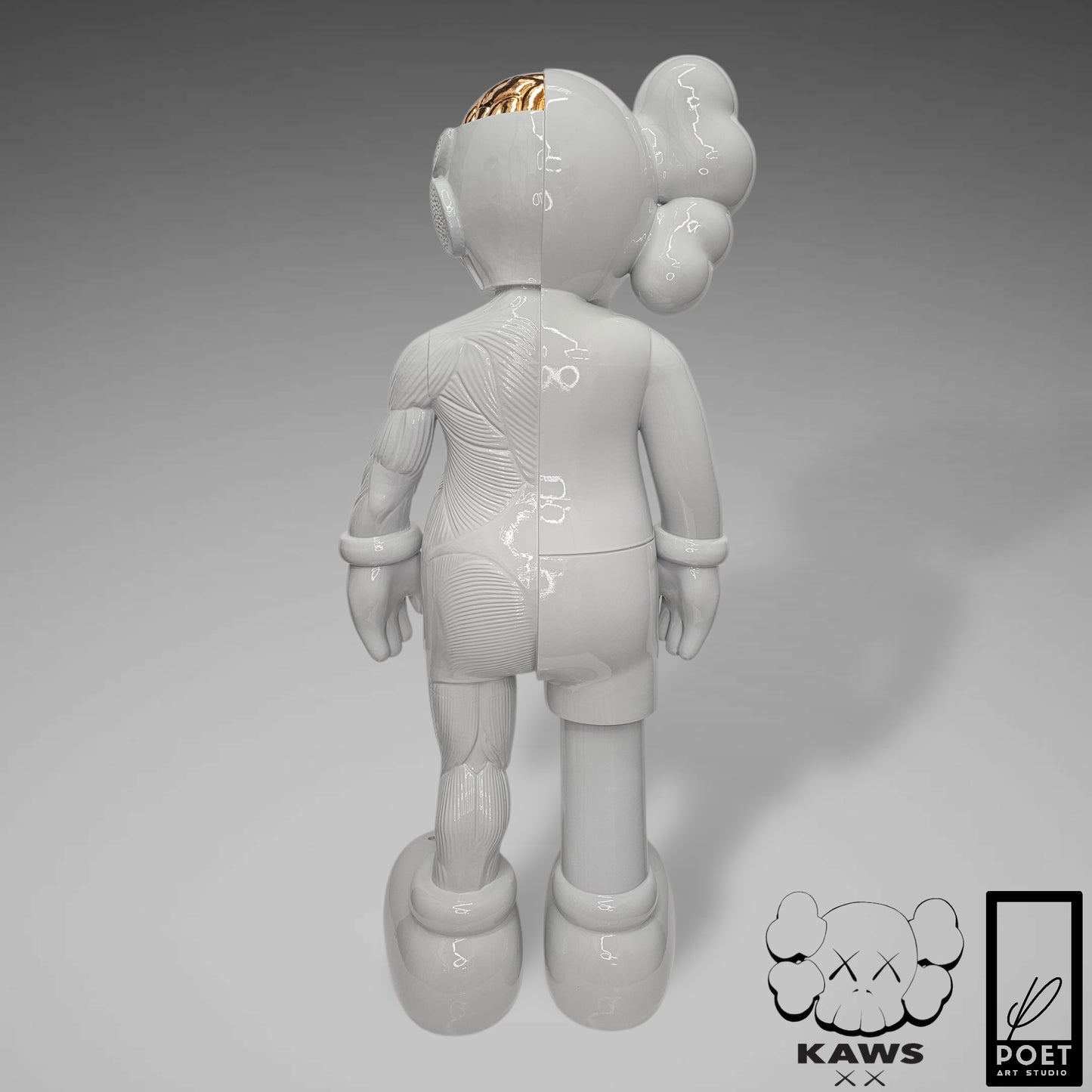 Experience the stunning combination of light gray glossy finish and hand-gilded rose gold accents with Inspired Kaws Flayed Open. Enhance any space with this unique and luxurious poetic piece.