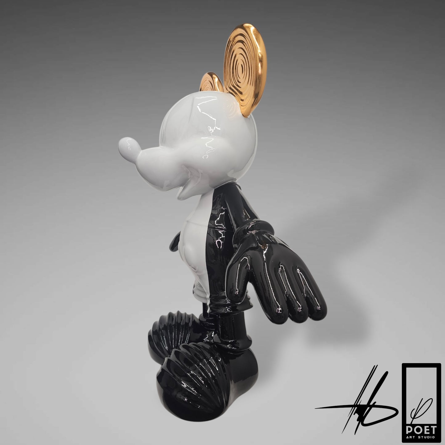 Táto lesklá čierno-siva socha Mickey Mouse, odborne vytvorená Poet Art Studio, je luxusným doplnkom každej kolekcie. Zlaté akcenty dodávajú dizajnu nádych bohatstva. Prineste domov nádych sofistikovanosti a Disneyho kúzla s týmto jedinečným majstrovským dielom.