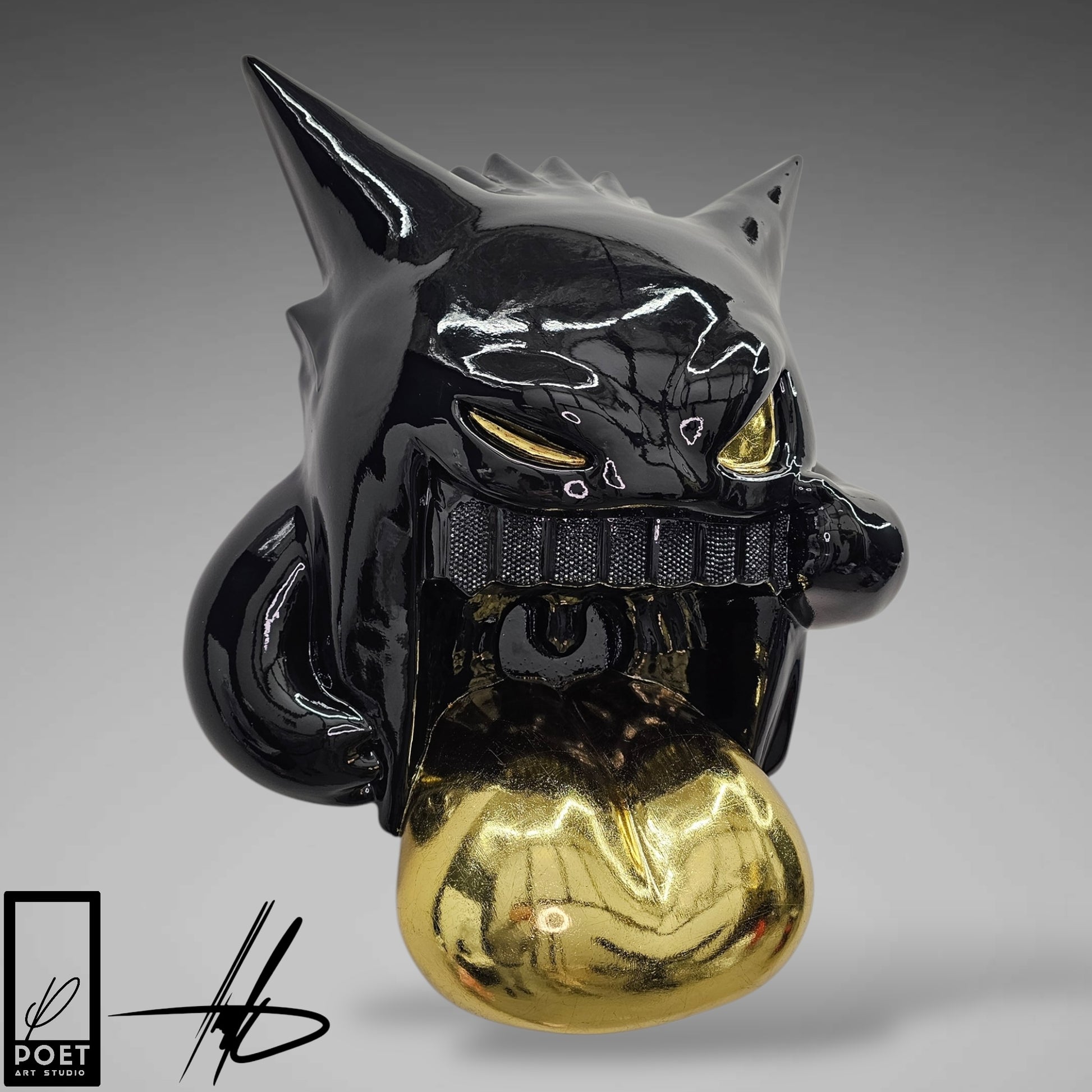 Gengar sees you by Poet is a unique wall sculpture with a dark glossy surface decorated with hand-gilded accents and black rhinestones. Stand out in style with this unique design.