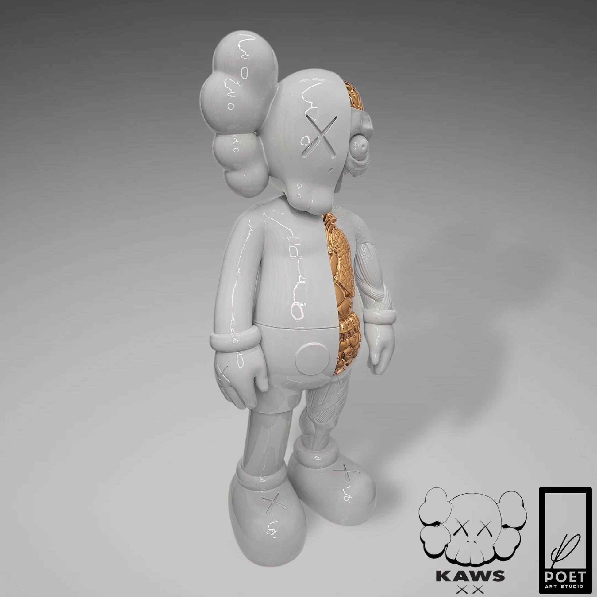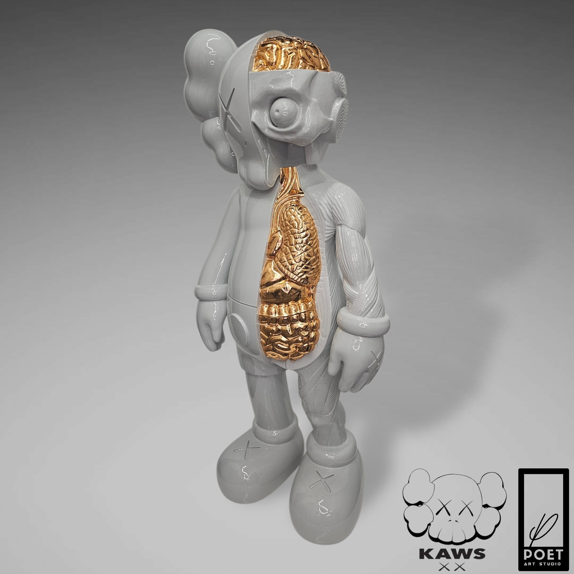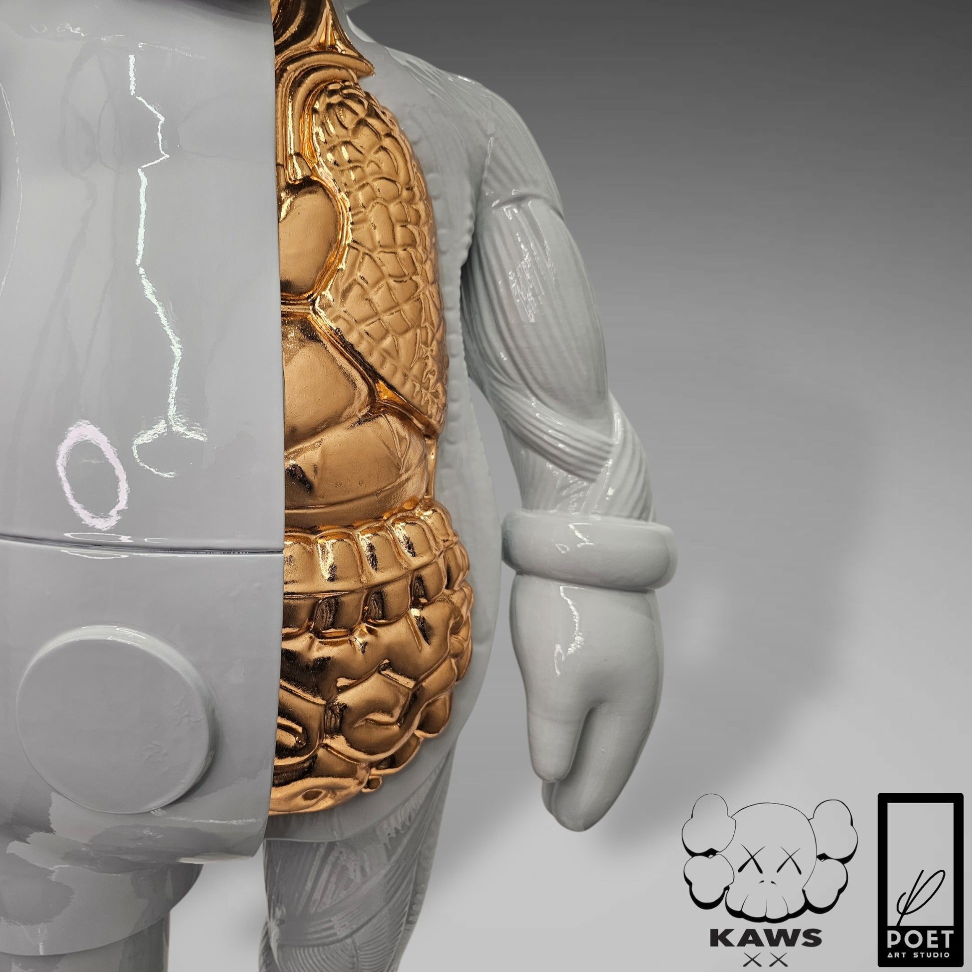 Experience the stunning combination of light gray glossy finish and hand-gilded rose gold accents with Inspired Kaws Flayed Open. Enhance any space with this unique and luxurious poetic piece.