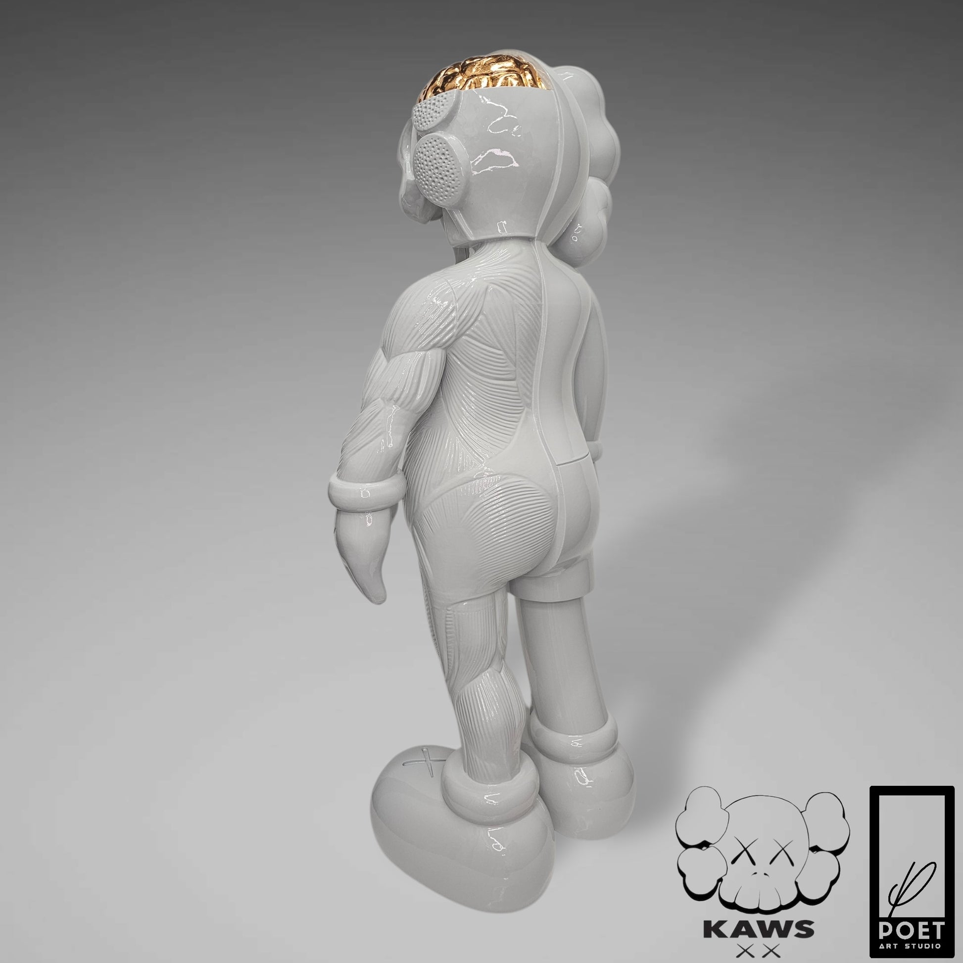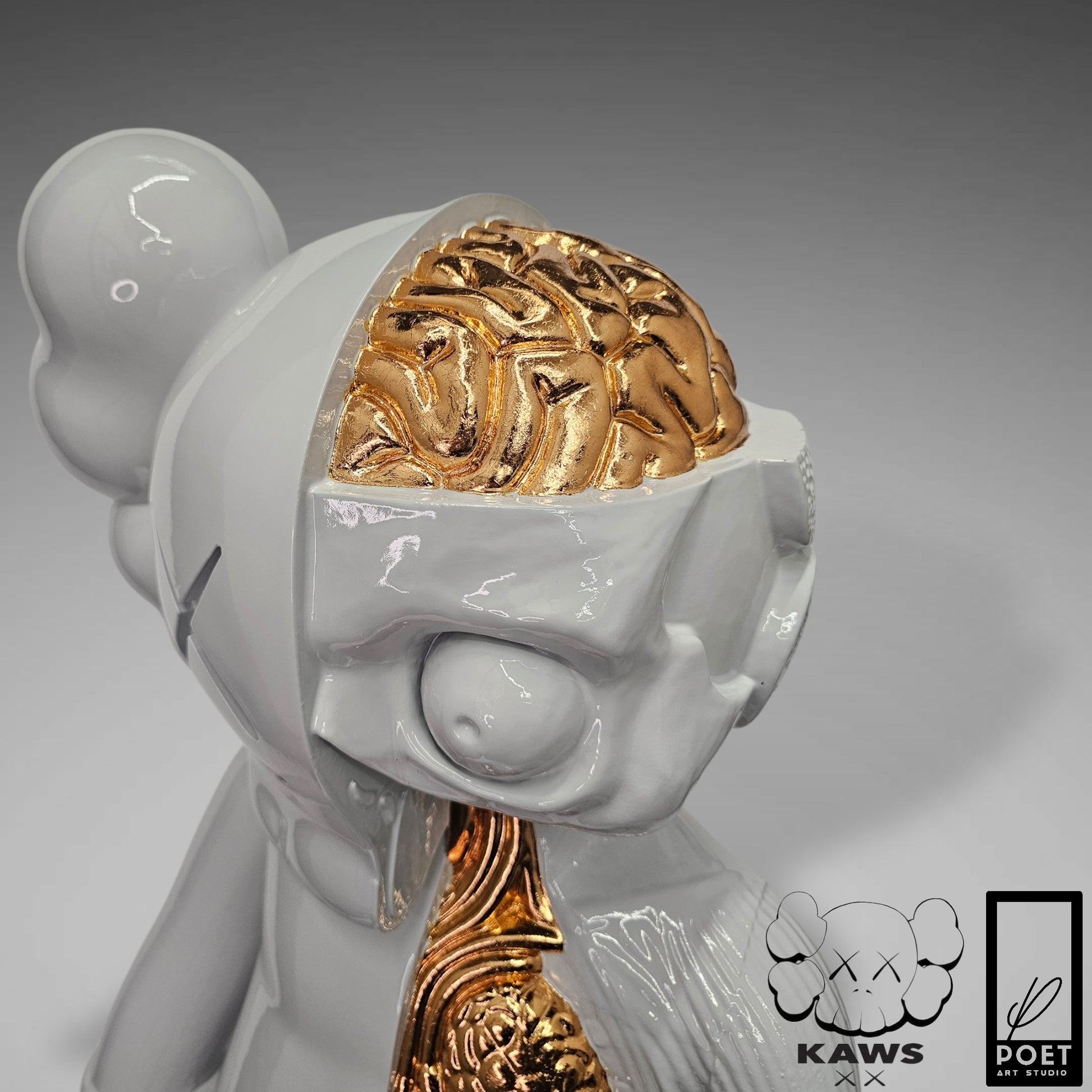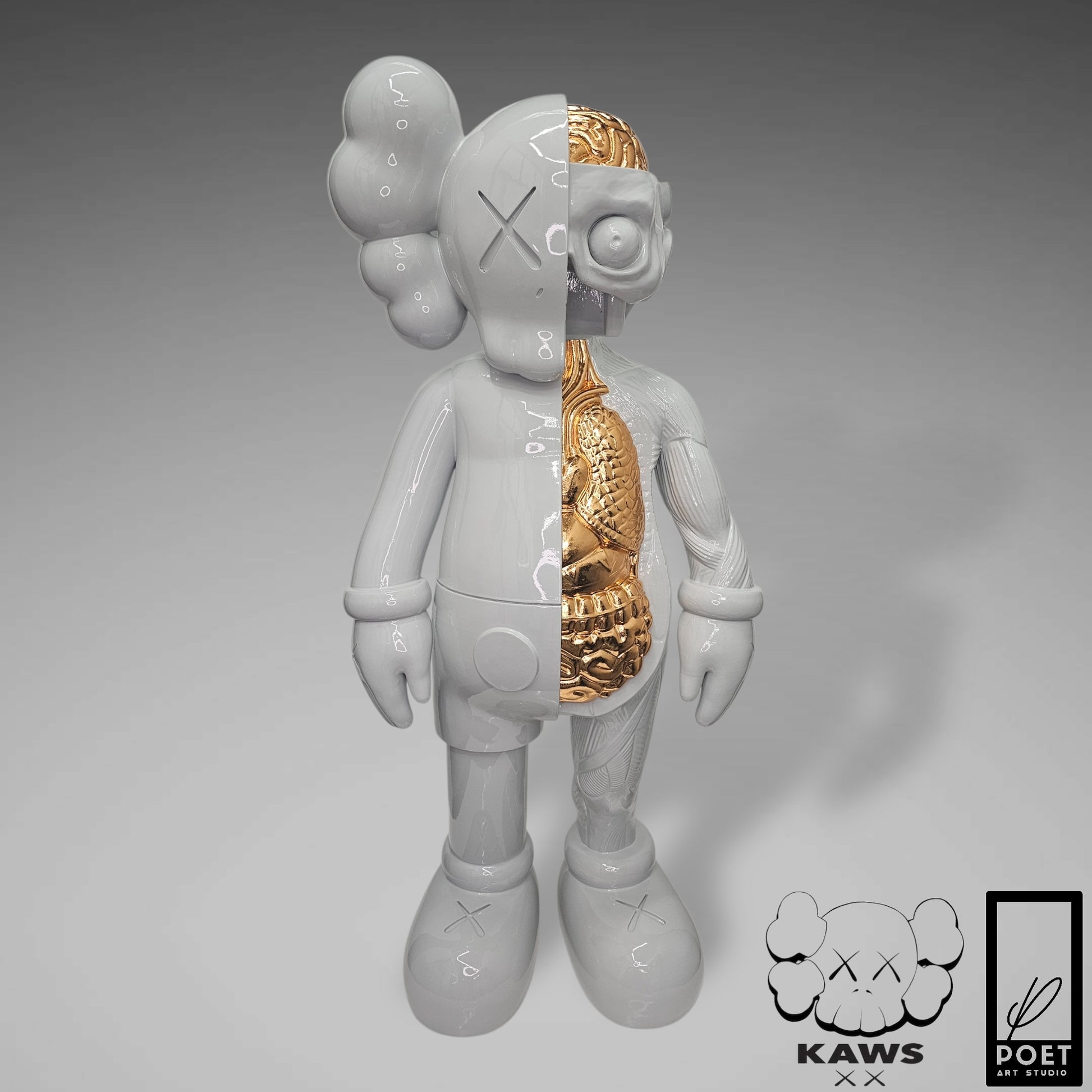 Experience the stunning combination of light gray glossy finish and hand-gilded rose gold accents with Inspired Kaws Flayed Open. Enhance any space with this unique and luxurious poetic piece.