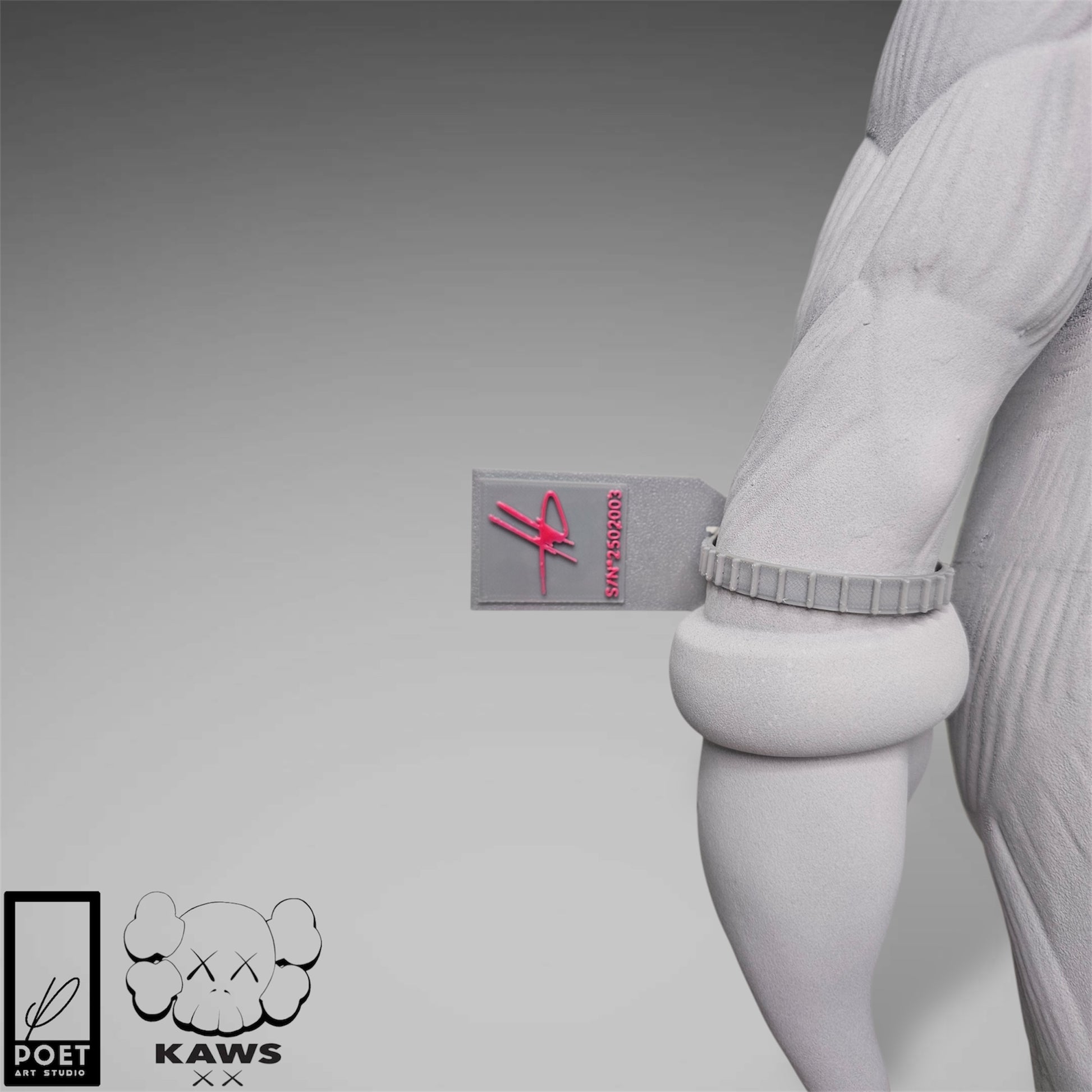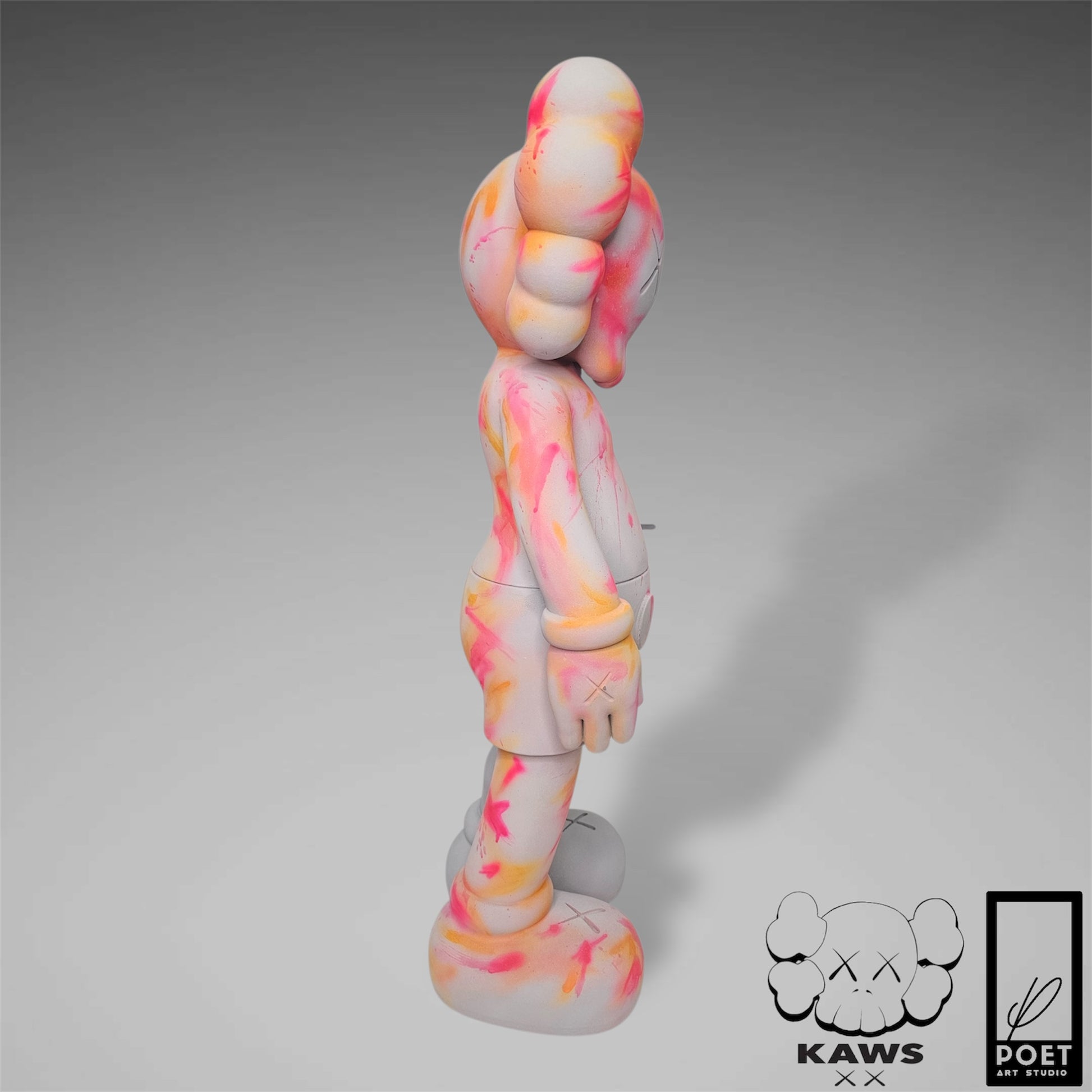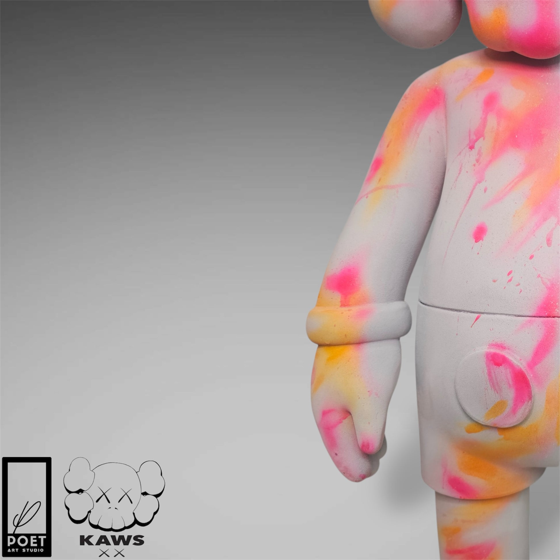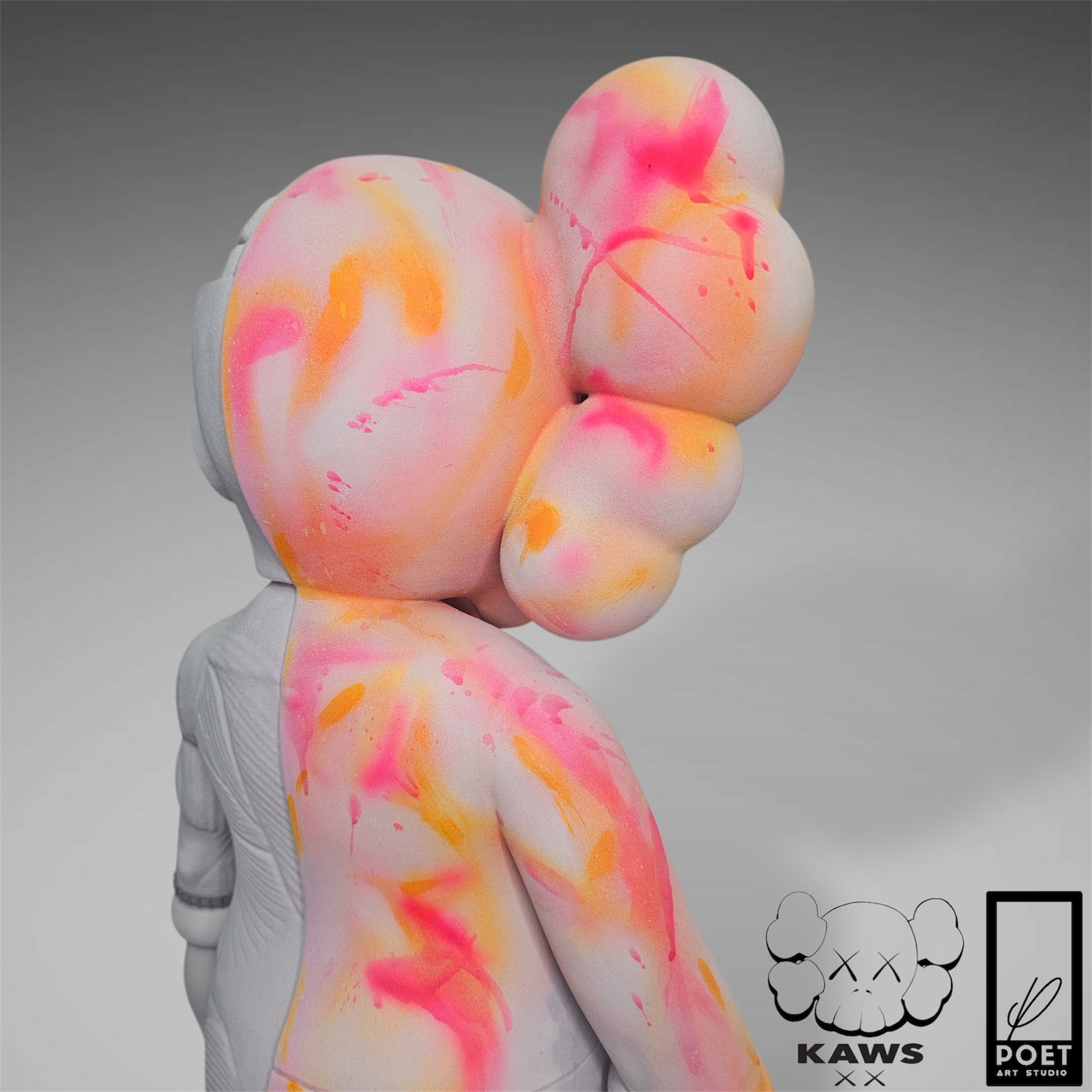 Experience the bold energy of Kaws with this abstract street art piece, featuring a light grey concrete base and vibrant neon accents. Add a touch of urban edge to any space with this inspired kaws flayed open design by Poet.